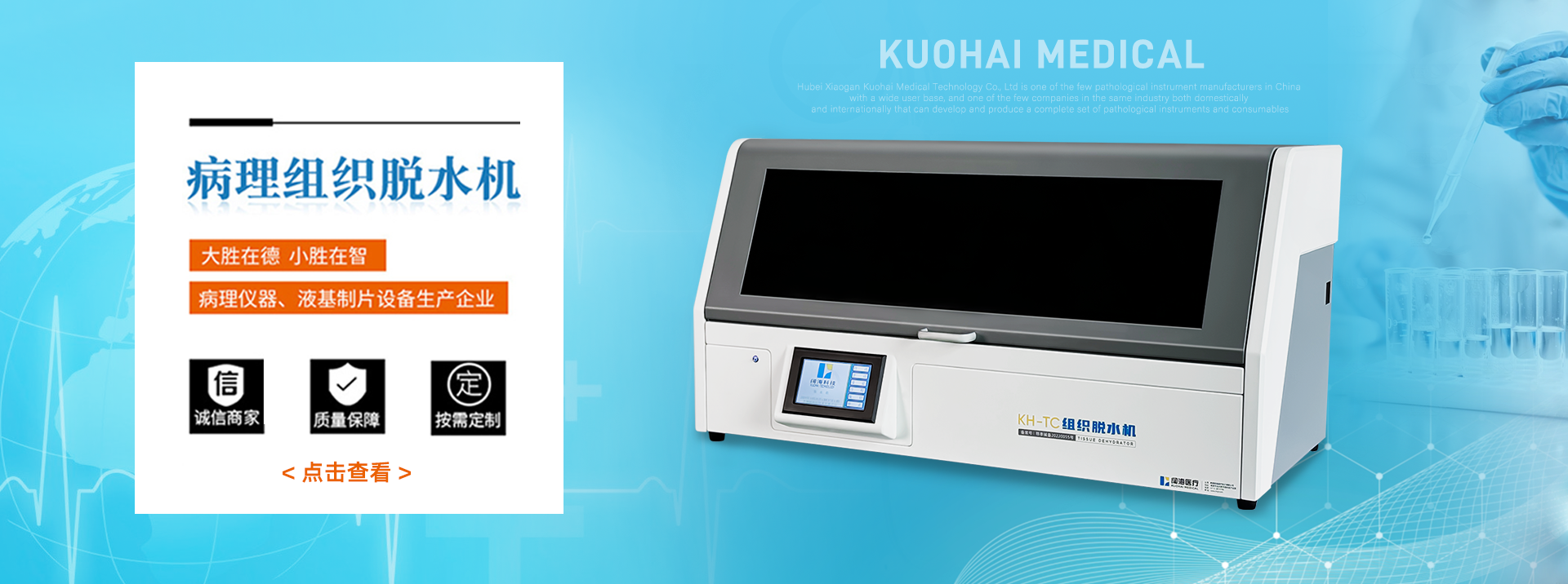 湖北孝感闊海醫(yī)療科技有限公司是國(guó)內(nèi)少有的、擁有遍布中國(guó)用戶群的病理儀器、解剖設(shè)備生產(chǎn)企業(yè),也是國(guó)內(nèi)外同行業(yè)中為數(shù)不多的幾家能研發(fā)、生產(chǎn)全套病理儀器、解剖臺(tái)設(shè)備及病理耗材的企業(yè)之一。2014年,公司新建現(xiàn)代化生產(chǎn)加工基地。2015年,闊海曾獲得“國(guó)家高新技術(shù)企業(yè)”認(rèn)定。
